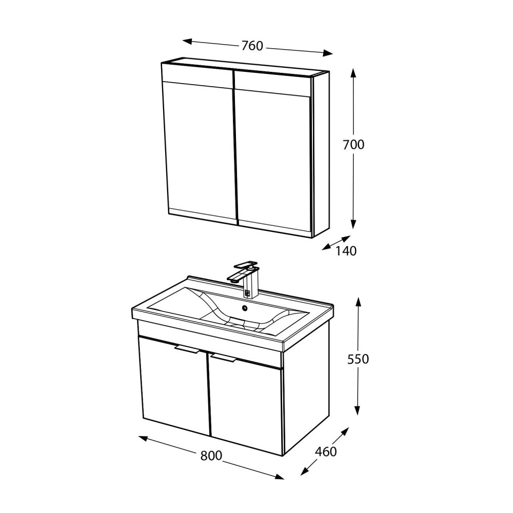 | Tip | Set kupatilskog nameštaja (2 komada) Carıno 80 Pine Matte Grey |