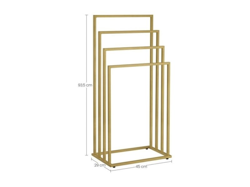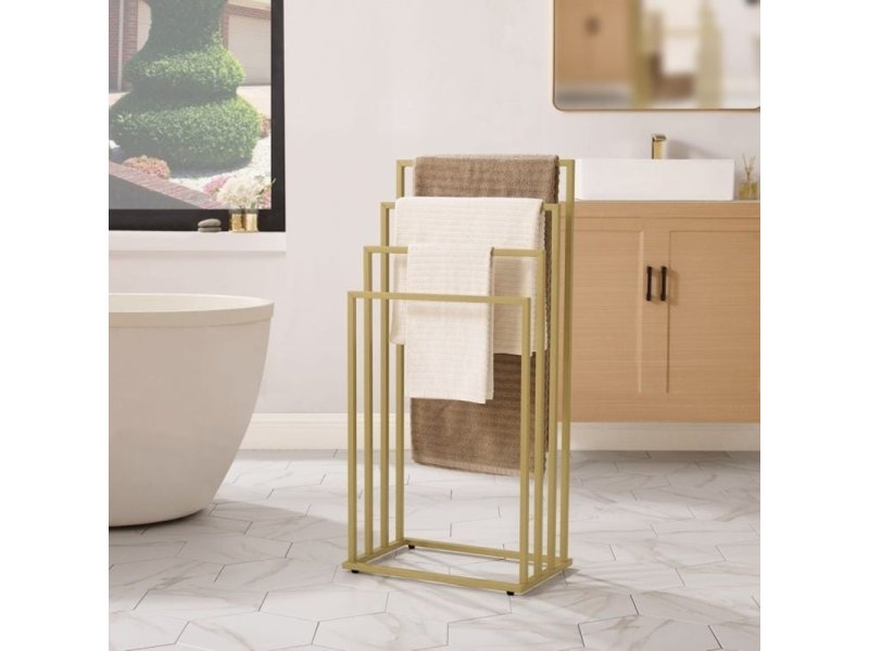 | Specifikacija | Moderan samostojeći držač za peškire predstavlja praktično rešenje koje obezbeđuje red i praktičnost u svakom kupatilu, vešernici ili kućnom spa prostoru. Čelična konstrukcija sa mat zlatnim završetkom izgleda moderno i elegantno, dodajući sofisticiran izgled svakom enterijeru. Držač se ne montira na zid, što ga čini svestranim može se postaviti bilo gde i lako premestiti po potrebi. Dimenzije pakovanja: 99x50x5 cm Težina: 3,5 kg |
