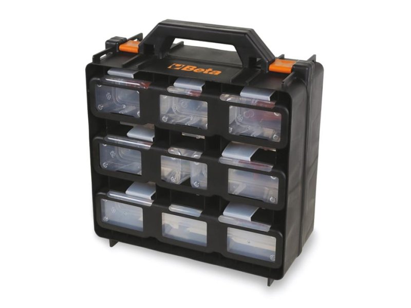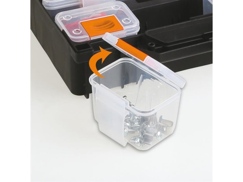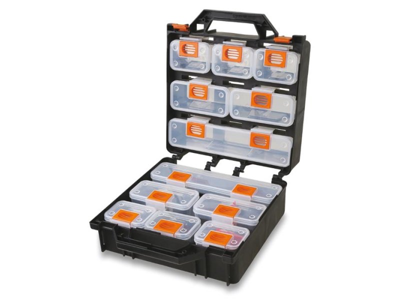 Specifikacije Prazan kofer za sitne delove sa 12 odvojivih klasera koji poseduju zakačaljke za kaiš