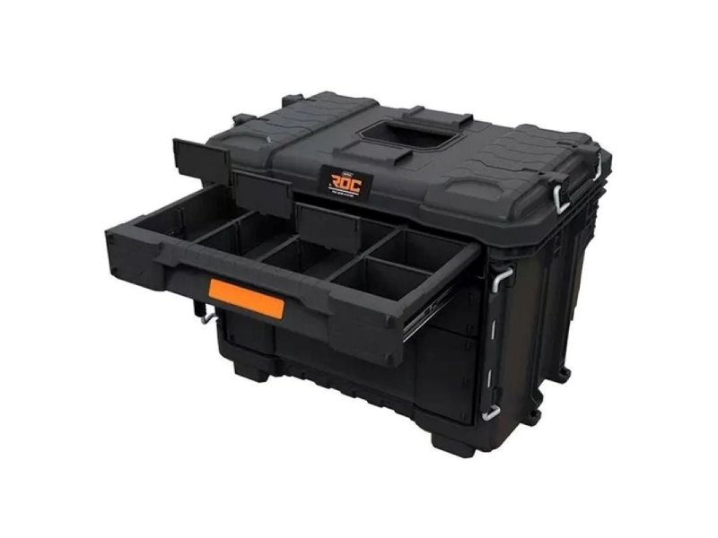 Kutija za alat Roc Pro Gear 3 fioke Keter CU 259671 predstavlja XL rešenje za profesionalnu organizaciju alata i pribora. Opremljena sa dve plitke fioke za sitne alate i dodatke i jednom dubokom fiokom za krupniju opremu, omogućava brz i jednostavan pristup svim komponentama. Zahvaljujući metalnim vođicama, fioke se glatko izvlače, dok čvrste prednje kopče obezbeđuju sigurnost u transportu. Kutija ima zapreminu od 26,4 litra, nosivost do 20 kg i težinu od 11,7 kg. Može se montirati na zid ili postaviti na Pro Gear kolica, a poseduje i otvor za katanac radi dodatne zaštite (katanac nije uključen). U paketu se nalaze pregrade za bolju organizaciju sadržaja. Idealna je za profesionalce koji traže pouzdano, prilagodljivo i praktično rešenje za skladištenje.