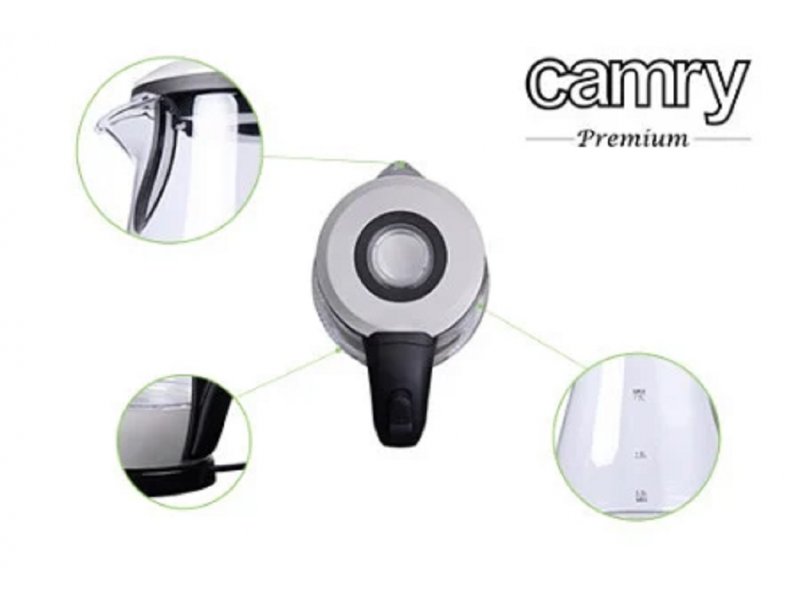 | Ostalo | Visokokvalitetni ravni grejni element od nerđajućeg čelika Automatska zaštita od prokuvanog bez vode Taložni filter Plavo pozadinsko osvetljenje LED osvetljenje tokom ključanja Dvostrani merač nivoa vode podjednako zgodan za dešnjake i levoruke Automatsko isključivanje Okretna baza za 360° Kućište od stakla Kompaktna osnovna ploča sa odlaganjem kablova Prekidač za otvaranje poklopca Napajanje: 220-240V ~50/60Hz Dužina kabla za napajanje: 64 cm Dimenzije proizvoda: 25,0 k 20,0 k 15,0 cm Boja: Bela |