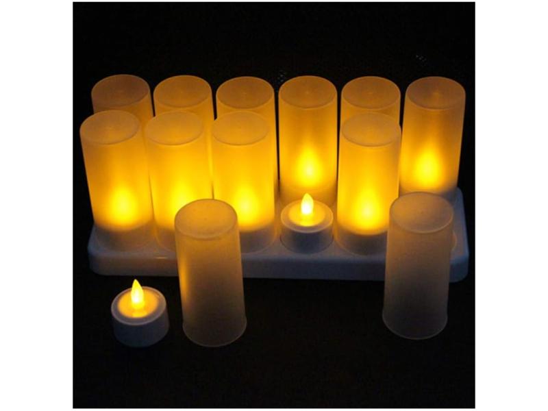 | Specifikacija | Komplet od 12 LED svećica za romantične trenutke. Komplet se sastoji od 12 pvc čaša, koje su predviđene da se u njih postave led sveće. Sveća se aktivira pomoću prekidača na dnu i ne poseduje baterije. Punjenje i rad je omogućen uz pomoć punjača koji se dobija u kompletu (belo postolje na kome se pune svećice i adapter), koji vam omogućuva da uvek možete dopuniti sveće bez potrebe za korišćenjem i kupovinom baterija. |