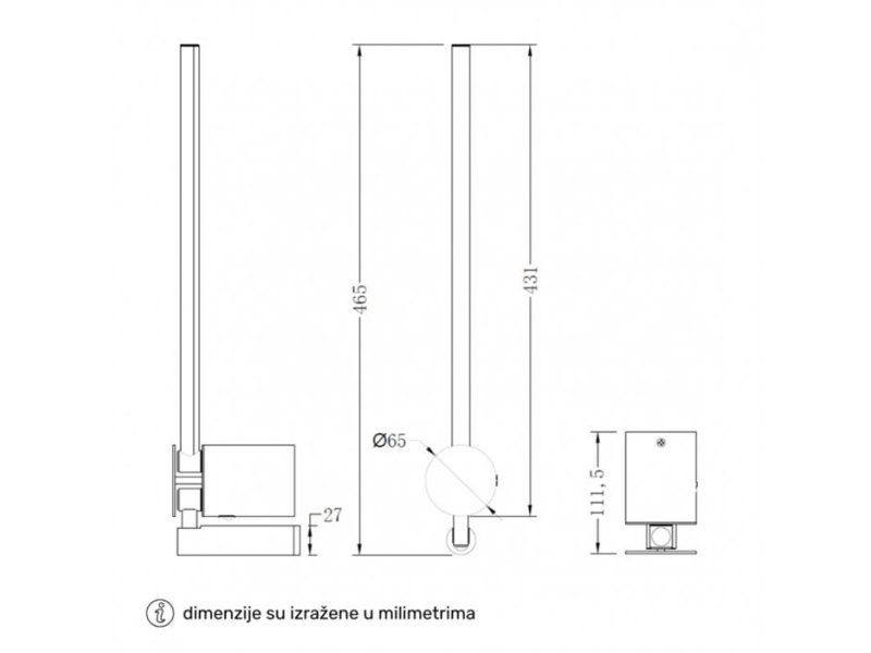 | Specifikacija | Tip lampe: Zidna LED lampa Model: SOLEA 99 Nazivni napon: 220-240V AC / 50/60Hz Nazivna snaga: 4 W Temperatura boje svetlosti: 3000 K Svetlosni fluks: 420 lm Izvor svetlosti: LED Boja proizvoda: Crna Materijal: Aluminijum Dimenzije: 465 x 65 x 110 mm Način montaže: Nadgradna Temperatura okruženja: -10°C do +45°C Prosečan radni vek: 30000 h na 25°C Energetska efikasnost: A+ Stepen električne zaštite: Klasa I IP zaštita: IP20 Potrošnja električne energije: 4 kWh / 1000h |