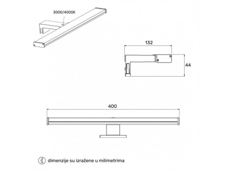 | Specifikacija | Tip lampe: Zidna lampa Model: VESTA 692 Nazivni napon: 220-240V AC / 50/60Hz Nazivna snaga: 8 W Temperatura boje svetlosti: 3000K/4000K Svetlosni fluks: 600 lm Izvor svetlosti: LED Boja proizvoda: Crna Materijal: PC Dimenzije: 400 x 132 x 44 mm Način montaže: Nadgradna Temperatura okruženja: -20°C do +35°C Prosečan radni vek: 15000 h na 25°C Energetska efikasnost: A IP zaštita: IP44 Potrošnja električne energije: 8 kWh / 1000h |