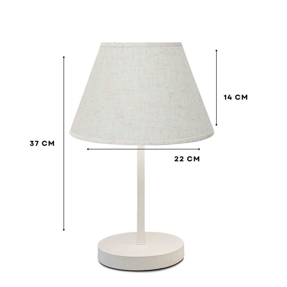 | Specifikacija | Stona lampa Materijal lampe: Plastika Materijal abažura: Tekstil Dimenzije: Ukupna visina: 37 cm Prečnik abažura: 22 cm Visina abažura: 14 cm Dužina kabla: 100 cm Broj izvora svetlosti: 1 Tip sijaličnog grla: E27 Specifikacije osvetljenja: E27 1x max 40W Radni napon: 220-240 V IP zaštita: IP20 Tip prekidača: Dugme za uključivanje/isključivanje na kablu Napomena: Sijalica nije uključena u pakovanje |