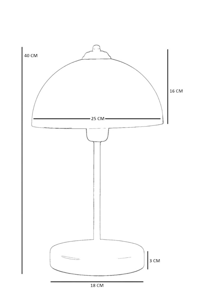 | Specifikacija | Stona lampa Materijal lampe: Metal Materijal abažura: Metal Dimenzije: Ukupna visina: 40 cm Prečnik abažura: 25 cm Visina abažura: 16 cm Prečnik baze: 18 cm Visina baze: 3 cm Dužina kabla: 100 cm Broj izvora svetlosti: 1 Tip sijaličnog grla: E27 Specifikacije osvetljenja: E27 1x max 40W Radni napon: 220-240 V IP zaštita: IP20 Tip prekidača: Dugme za uključivanje/isključivanje na kablu Napomena: Sijalica nije uključena u pakovanje |