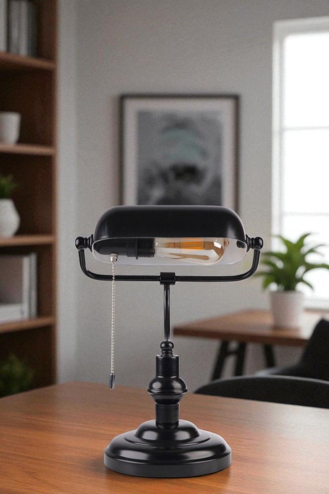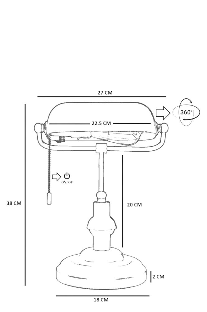 | Specifikacija | Stona lampa Materijal lampe: Metal Materijal abažura: Metal Dimenzije: Ukupna visina: 38 cm Dimenzije abažura: 22.5 x 10 cm Prečnik baze: 18 cm Visina baze: 2 cm Dužina kabla: 100 cm Broj izvora svetlosti: 1 Tip sijaličnog grla: E27 Specifikacije osvetljenja: E27 1x max 40W Radni napon: 220-240 V IP zaštita: IP20 Tip prekidača: Dugme za uključivanje/isključivanje na kablu Napomena: Sijalica nije uključena u pakovanje |