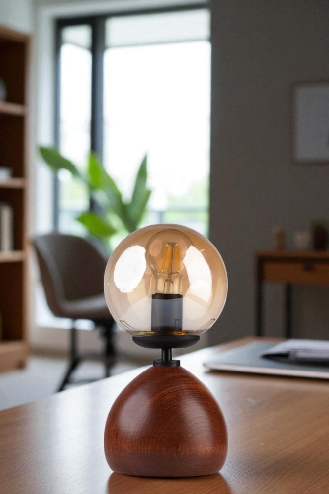 | Specifikacija | Stona lampa Materijal lampe: Drvo Materijal abažura: Staklo Dimenzije: Ukupna visina: 30 cm Prečnik abažura: 15 cm Visina abažura: 15 cm Dužina kabla: 100 cm Broj izvora svetlosti: 1 Tip sijaličnog grla: E27 Specifikacije osvetljenja: E27 1x max 40W Radni napon: 220-240 V IP zaštita: IP20 Tip prekidača: Dugme za uključivanje/isključivanje na kablu Napomena: Sijalica nije uključena u pakovanje |