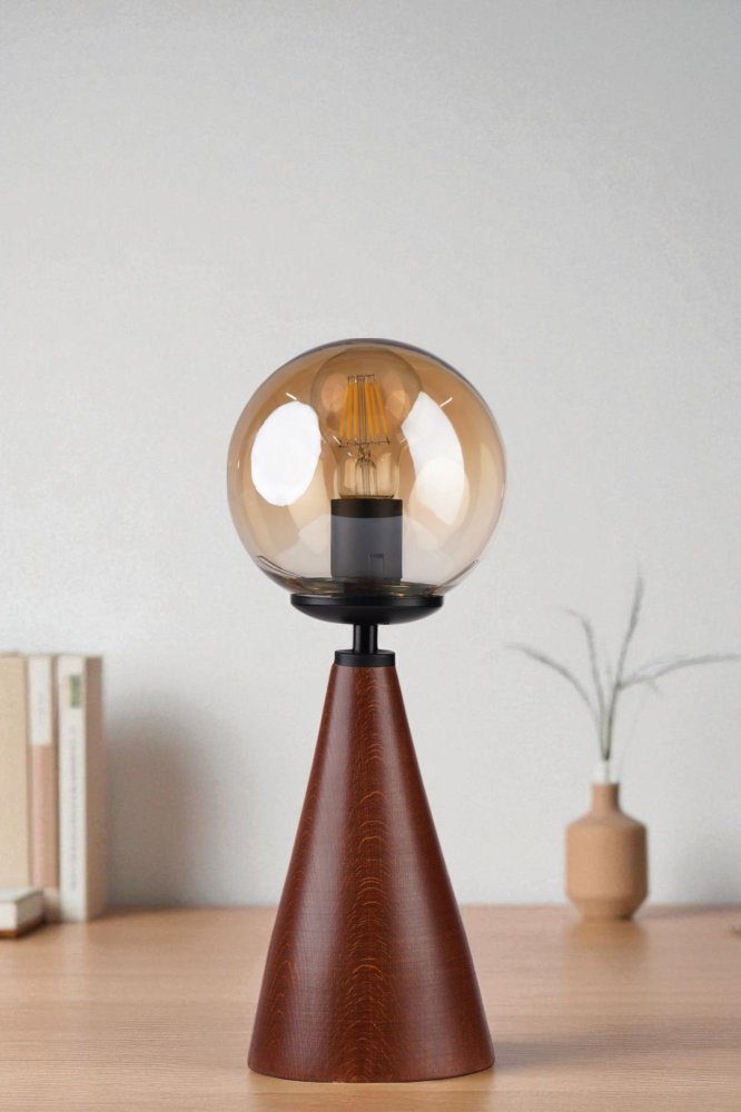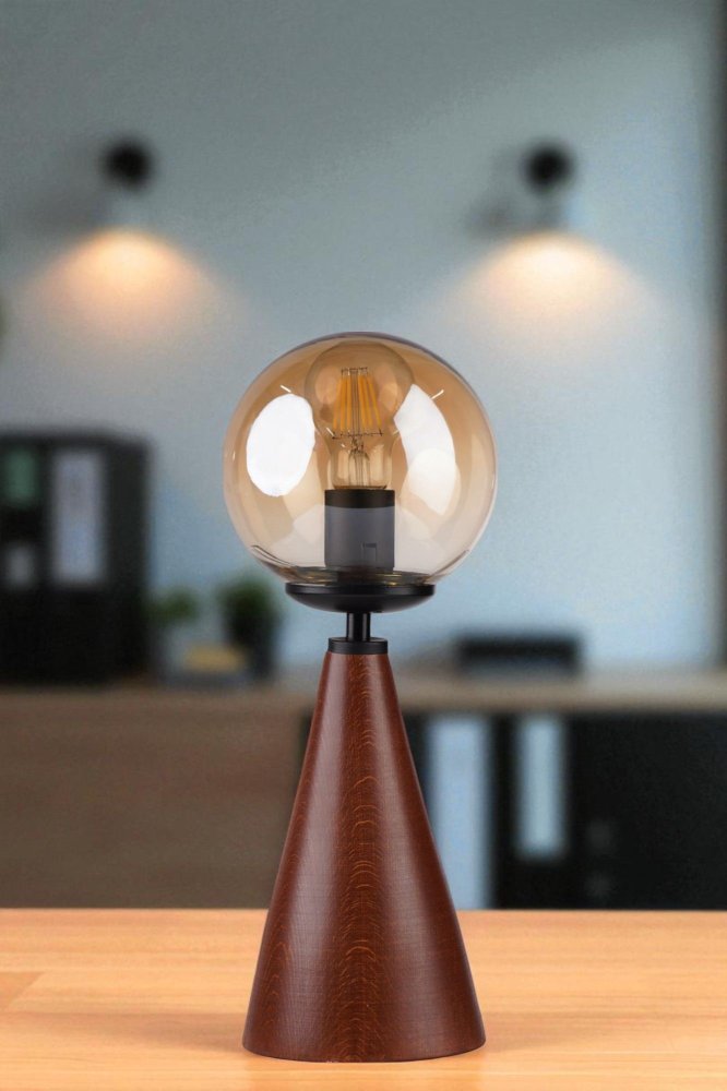 | Specifikacija | Stona lampa Materijal lampe: Drvo Materijal abažura: Staklo Dimenzije: Ukupna visina: 38 cm Prečnik abažura: 15 cm Visina abažura: 15 cm Dužina kabla: 100 cm Broj izvora svetlosti: 1 Tip sijaličnog grla: E27 Specifikacije osvetljenja: E27 1x max 40W Radni napon: 220-240 V IP zaštita: IP20 Tip prekidača: Dugme za uključivanje/isključivanje na kablu Napomena: Sijalica nije uključena u pakovanje |