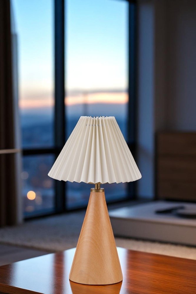 | Specifikacija | Stona lampa Materijal lampe: Drvo Materijal abažura: PVC Dimenzije: Ukupna visina: 38 cm Prečnik abažura: 8-23 cm Visina abažura: 15 cm Dužina kabla: 100 cm Broj izvora svetlosti: 1 Tip sijaličnog grla: E27 Specifikacije osvetljenja: E27 1x max 40W Radni napon: 220-240 V IP zaštita: IP20 Tip prekidača: Dugme za uključivanje/isključivanje na kablu Napomena: Sijalica nije uključena u pakovanje |