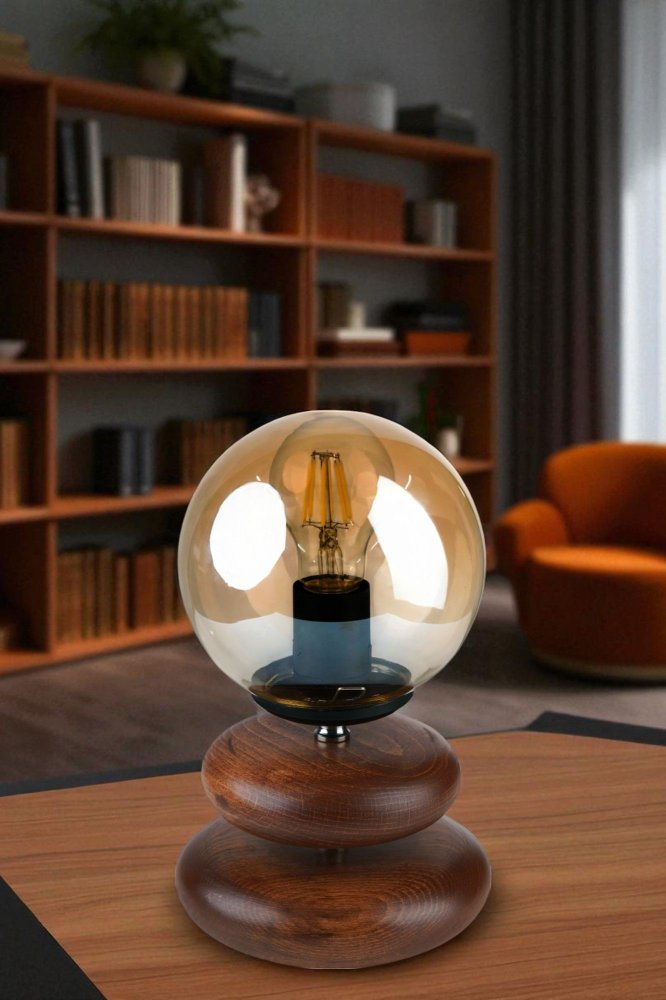 | Specifikacija | Stona lampa Materijal lampe: Drvo Materijal abažura: Staklo Dimenzije: Ukupna visina: 28 cm Prečnik abažura: 15 cm Visina abažura: 15 cm Dužina kabla: 100 cm Broj izvora svetlosti: 1 Tip sijaličnog grla: E27 Specifikacije osvetljenja: E27 1x max 40W Radni napon: 220-240 V IP zaštita: IP20 Tip prekidača: Dugme za uključivanje/isključivanje na kablu Napomena: Sijalica nije uključena u pakovanje |