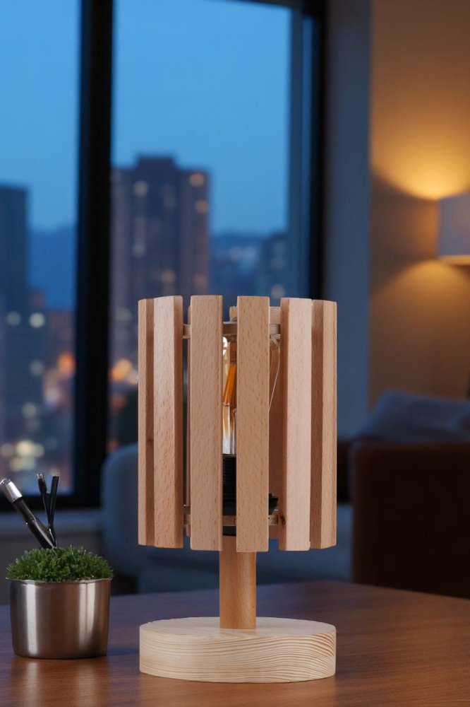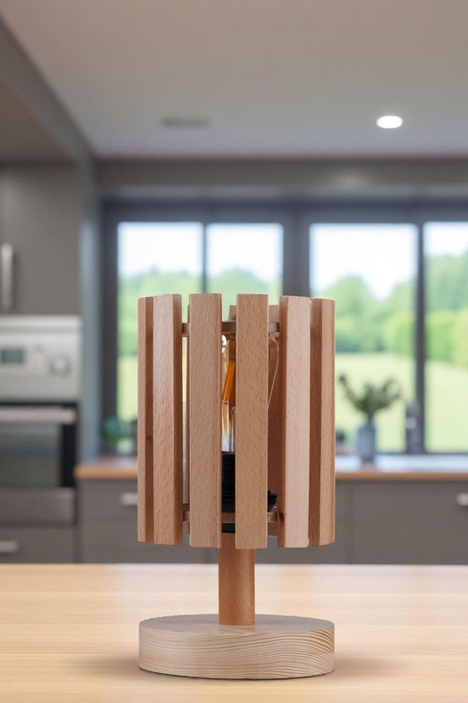 | Specifikacija | Stona lampa Materijal lampe: Drvo Materijal abažura: Drvo Dimenzije: Ukupna visina: 29 cm Prečnik abažura: 14.5 cm Visina abažura: 19 cm Prečnik baze: 15.5 cm Visina baze: 10 cm Dužina kabla: 100 cm Broj izvora svetlosti: 1 Tip sijaličnog grla: E27 Specifikacije osvetljenja: E27 1x max 40W Radni napon: 220-240 V IP zaštita: IP20 Tip prekidača: Dugme za uključivanje/isključivanje na kablu Napomena: Sijalica nije uključena u pakovanje |