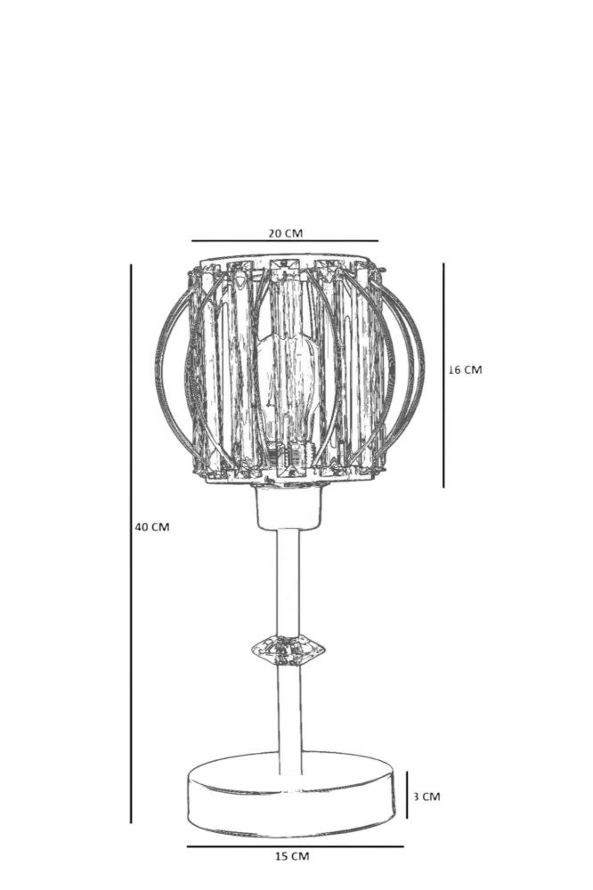 | Specifikacija | Stona lampa Materijal lampe: Metal Materijal abažura: Staklo Dimenzije: Ukupna visina: 40 cm Prečnik abažura: 20 cm Visina abažura: 16 cm Prečnik baze: 15 cm Visina baze: 3 cm Dužina kabla: 100 cm Broj izvora svetlosti: 1 Tip sijaličnog grla: E27 Specifikacije osvetljenja: E27 1x max 40W Radni napon: 220-240 V IP zaštita: IP20 Tip prekidača: Dugme za uključivanje/isključivanje na kablu Napomena: Sijalica nije uključena u pakovanje |