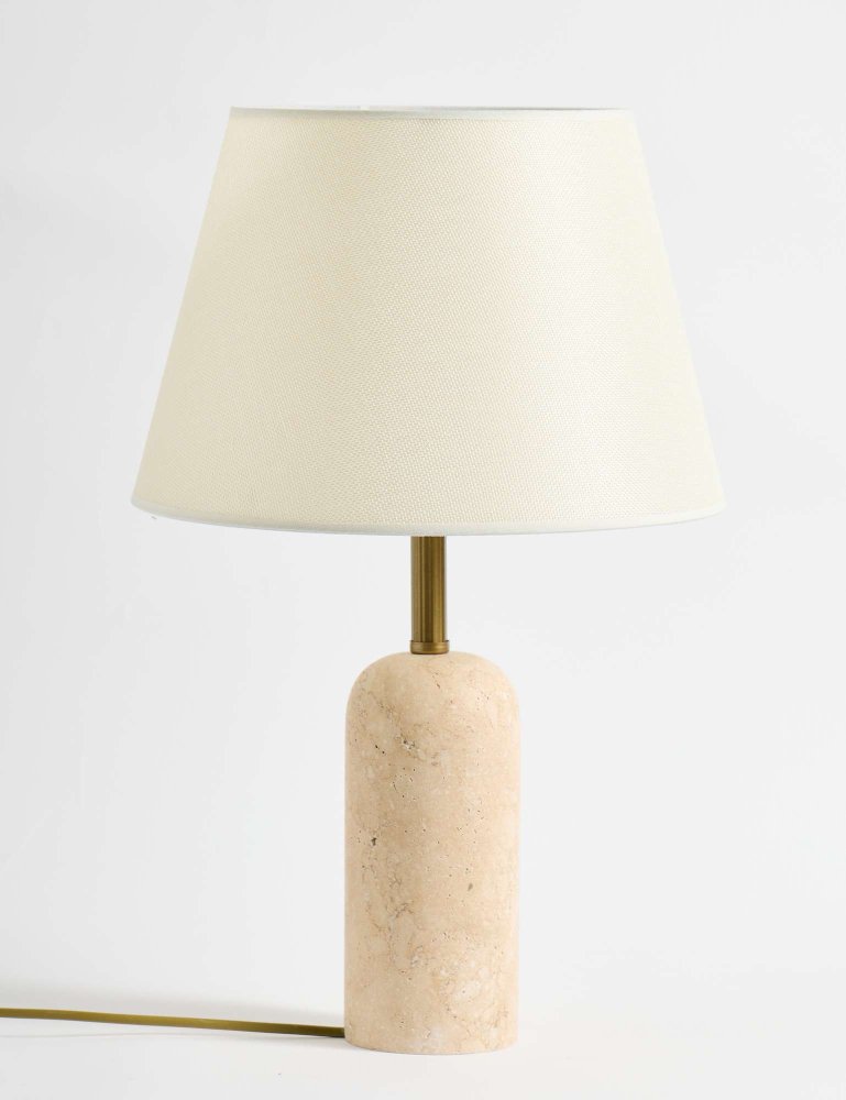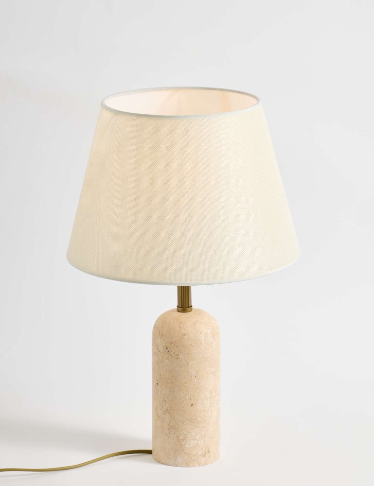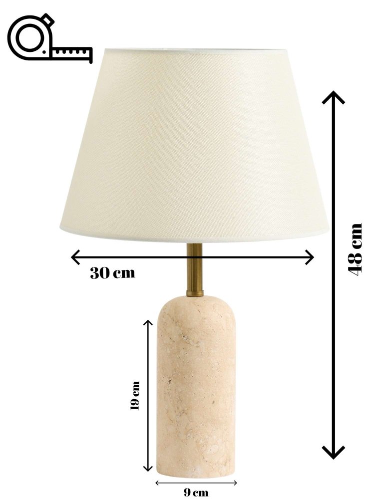 | Specifikacija | Stona lampa Materijal lampe: 100% Travertin Materijal abažura: Tekstil Dimenzije: Ukupna visina: 48 cm Prečnik abažura: 30 cm Visina abažura: 20 cm Prečnik tela: 9 cm Visina tela: 19 cm Dužina kabla: 150 cm Broj izvora svetlosti: 1 Tip sijaličnog grla: E27 Specifikacije osvetljenja: E27 1 x max 40W Radni napon: 220-240 V IP zaštita: IP20 Prekidač za uključivanje/isključivanje na kablu Napomena: Sijalica nije uključena u pakovanje |