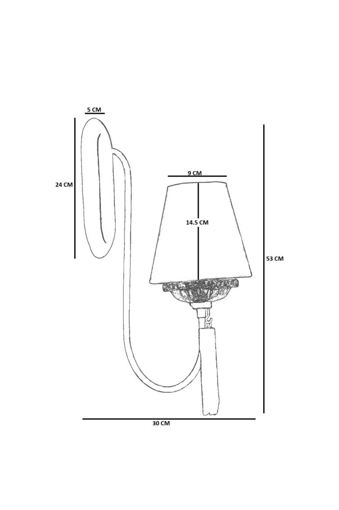 | Specifikacija | Zidna lampa Materijal lampe: Metal Materijal abažura: Tekstil Dimenzije: Ukupna visina: 53 cm Prečnik abažura: 9 cm Visina abažura: 14.5 cm Dimenzije baze: 24 x 10 cm Visina baze: 5 cm Broj izvora svetlosti: 1 Tip sijaličnog grla: E27 Specifikacije osvetljenja: E27 1x max 40W Radni napon: 220-240 V IP zaštita: IP20 Napomena: Sijalica nije uključena u pakovanje |