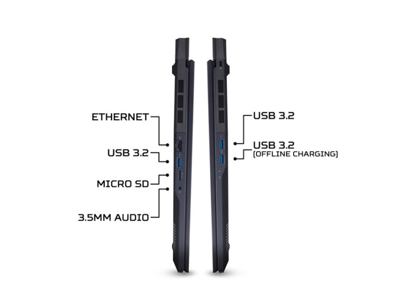 | Slotovi | Thunderbolt: 1x Thunderbolt 4 preko USB Type-C HDMI priključci: 1x HDMI 2.1 Ukupno USB priključaka: 5 USB-A priključci: 2x USB 5Gbps (3.2 Gen 1), 2x USB 10Gbps (3.2 Gen 2) USB-C priključci: 1x USB 10Gbps (3.2 Gen 2) RJ-45 (LAN): 1 Audio: 1x 3.5mm (Combo Audio Jack) Čitač kartica: microSD |