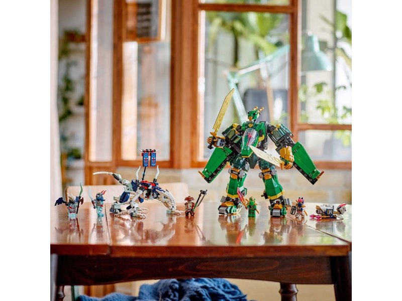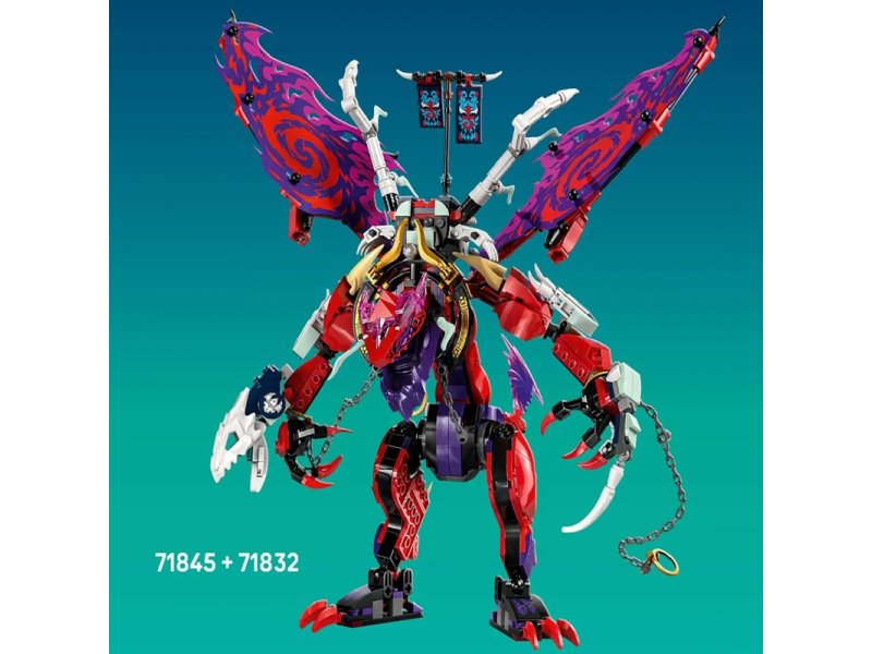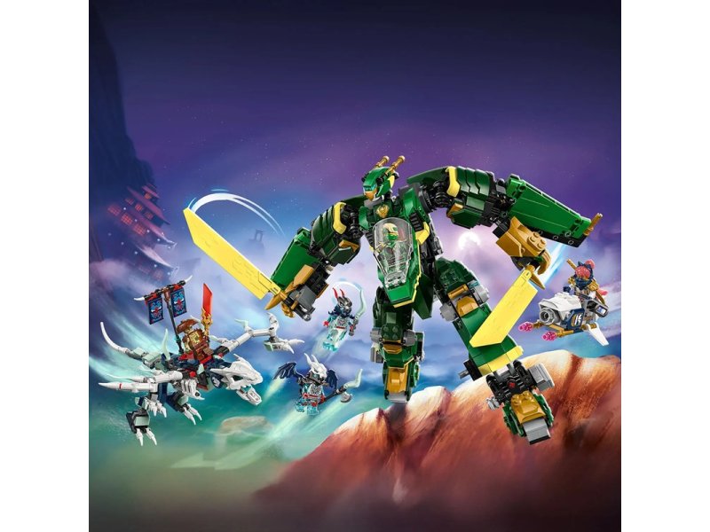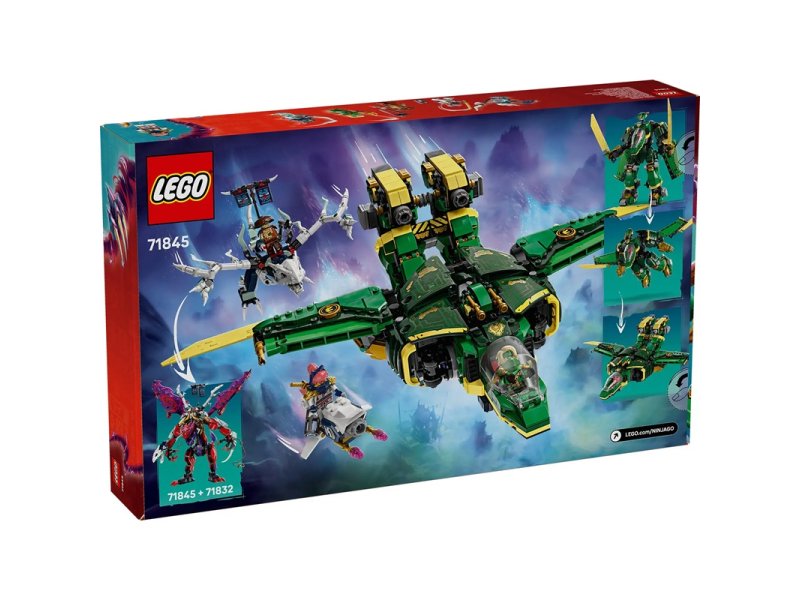 | Karakteristike | Spremite se za veličanstvene bitke sa Lojdovim mlaznim mekom. Stavite ga u režim meka za borbu sa 2 velika mača na zemlji, zatim ga transformišite u mlazni režim kako bi se vinuo u nebo! Morate se boriti protiv Kura, gospodara propadanja, Tira i Utvarnog Zmajevitog ratnika. Sora ih može napasti na svom letećem motociklu – ali pazite se opasnog utvarnog zmaja zle trojke. Povedimo nindže u pobedu! Lojdov mlazni mek (71845), nindža komplet igračaka za gradnju omogućava dečacima i devojčicama uzrasta od 9 i više godina da uživaju u nindža avanturama i borbama u vazduhu i na zemlji dok rekonstruišu akcione scene iz sezone 3 TV serije NINJAGO® Dragons Rising. Deca odigravaju akciju uz ovaj impresivni borbeni komplet sa igračkom mekom koja ima podesive noge i ruke, kao i kokpit i 2 velika dodatka mača. Oni zatim mogu da preurede svoje delove meka i da kreiraju sjajnu igračku mlaznjak sa kokpitom, krilima i mlaznim motorima. Ovaj avanturistički borbeni komplet igračaka sadrži 5 mini-figura: Soru i Lojda naoružane dodacima nindža oružjem kako bi se suprotstavili zloj trojci Kura, Tira i Utvarnog Zmajevitog ratnika, koji imaju transparent sa tajnom porukom koja može da se pročita samo pomoću Lojdovog prozirnog sečiva otkrivanja. Sora ima leteći motocikl koji vozi, dok zlikovci imaju podesivu igračku utvarnog zmaja, koja može da se kombinuje sa delovima kompleta Grom-očnjak Zmaj haosa (71832) (prodaje se zasebno). Komplet sadrži 1112 delova. • Nindža igračka za decu – Lojdov mlazni mek omogućava dečacima i devojčicama uzrasta od 9 i više godina da rekonstruišu uzbudljivu akciju iz sezone 3 TV serije NINJAGO® Dragons Rising • Nindža vozilo koje se transformiše – deca mogu da preurede delove tela podesive figure meka sa kokpitom i 2 velika mača kako bi brzo kreirali igračku mlaznjak sa kokpitom, krilima i mlaznim motorima • Igračke zmaj i motocikl – avanturistički komplet igračaka takođe sadrži igračku leteći motocikl koji vozi Sora i igračku zlog sablasnog zmaja kojima deca mogu da igraju još veće scene bitke • 5 LEGO® NINJAGO® mini-figura – Ovaj akcioni komplet za igru sadrži nindže Soru i Lojda, kao i zlu trojku, Kura, gospodara propadanja, Tira i Utvarnog Zmajevitog ratnika za veličanstvene bitke • Ideja za rođendanski poklon namenjen deci – ovaj komplet za igru uloga pruža zabavno iskustvo gradnje i igre i sjajan je poklon za decu koja vole pripovedanje sa svojim nindža herojima • Zabavan način gradnje – neka aplikacija LEGO® Builder vodi decu kroz intuitivnu avanturu gradnje u kojoj mogu da čuvaju komplete, prate napredak, uveličavaju i rotiraju modele u 3D tokom gradnje • Univerzum nindža igračaka – LEGO® NINJAGO® kompleti za gradnju omogućavaju deci da pobegnu u svet fantazije i avantura uz svoje nindža heroje • Dimenzije – izgrađen u režimu meka, ovaj LEGO® akcioni komplet za gradnju igračke od 1112 delova visok je 24 cm (9,5 in.) |