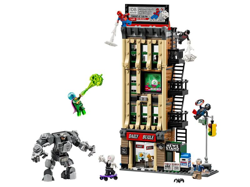 | Karakteristike | Set Spajdermen protiv Misterija (76342) nudi četiri nivoa zabave za decu od 10 i više godina. Ova zgrada je prepuna minifigura i detalja, od recepcije i kancelarija, do tehnike u redakciji i sefa sa novcem. Spolja se nalaze vatrogasne stepenice, pokretni kiosk sa novinama i ulični ugao sa semaforom. Uz set dobijaš 7 minifigura: Spajdermena, Majlsa Moralesa, Goust-Spajder, Dž. Jonu Džejmsona, Misterija, Venoma-Kapetana Ameriku i Rajna, kao i pokretni Rajno robot sa kokpitom. Tu su i providni držači koji omogućavaju nindžama da „levitiraju“ u borbi. Set sadrži 781 deo. ZGRADA DEJLI BAGLA – Istraži četiri sprata puna akcije i detalja iz Marvelovog univerzuma u jednoj od najpoznatijih filmskih zgrada. 7 MINIFIGURA – Komplet sadrži Spajdermena, Majlsa Moralesa, Goust-Spajder, Dž. Jonu Džejmsona, Misterija, Venoma-Kapetana Ameriku i Rajna. IGRAJ SE I IZLOŽI – Detaljan enterijer i eksterijer sa funkcijama poput bilborda čija se slika može menjati pomoću poluge. BOGATI DODACI – Set sadrži tri bele mreže, štit Kapetana Amerike, fotokopir aparat, skejtbord, sef sa novcem, picu i još mnogo toga. POKLON ZA MARVEL FANOVE – Vrhunski kolekcionarski set koji je idealan poklon za decu i mlade superheroje od 10 i više godina. ZAJEDNIČKA GRADNJA – Aplikacija LEGO Builder omogućava da više osoba gradi istovremeno, svako na svom uređaju. DIMENZIJE – Zgrada Dejli Bagla je visoka oko 33 cm, široka oko 20 cm i duboka oko 6 cm. |