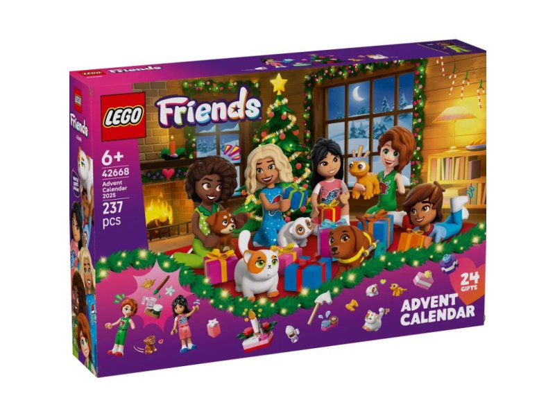 | Karakteristike | Neka zvončići zvone sve do zabavnog prazničnog spavanja kod drugarice! Alija, Dunja, Liena, Nova i Leo se okupljaju da provedu udobnu noć. Doveli su ljubimce Airu, Kokicu, Rubi, Čura i Pikl. Otvorite vrata svakog dana tokom praznika da vidite u kakvim aktivnostima prijatelji uživaju tokom druženja, među kojima su kićenje jelke, karaoke i međusobno isprobavanje aksesoara – i na ljubimcima! Inspirišite prazničnu radost i udobne trenutke kod devojčica i dečaka uzrasta od 6 i više godina dok otvaraju vrata kompleta za gradnju LEGO® Friends Božićni kalendar za 2025. godinu (42668). Sadrži 5 mini-lutaka, među kojima su Alija, Dunja, Liena, Nova i Leo, kao i 5 LEGO životinja među kojima su 2 psa, morsko prase, gekon i figura mačke. Otvorite jedna vrata svaki dan kako biste gradili priču o spavanju kod drugarice. Nađite iznenađenja iza svakih vrata sa slatkim božićnim gradnjama koje možete napraviti. Otkrijte praznične aktivnosti kao što je pisanje Deda Mrazu, kićenje jelke, karaoke, jahanje drvenog konjića i kuvanje tople čokolade. Svaka mini-lutka sadrži dušek, a svaki ljubimac ima dodatak tako da deca mogu da kreiraju različite priče dok sastavljaju scenu. Među ostalim zabavnim dodacima nalaze se kauč, lampa, kamin, sanke, 5 poklon-kutija i LEGO plišani irvas. Osim što je poklon za praznično odbrojavanje za decu, ova kreativna igračka podržava društvene veštine mladih graditelja dok se pridružuju prijateljima na nezaboravnom spavanju kod drugarice. • LEGO® Friends Božićni kalendar za 2025. godinu – komplet dečji praznični kalendar donosi 24 dana iznenađenja za devojčice i dečake uzrasta od 6 i više godina, kako bi stvorili prazničnu scenu spavanja kod drugarice • Istražite praznične aktivnosti – pridružite se junacima dok pišu Deda Mrazu, kite jelku, pevaju karaoke, jašu drvenog konjića i prave toplu čokoladu pre nego što se opuste na svojim krevetima • Priloženo je 5 LEGO® Friends junaka – sadrži mini-lutke Aliju, Dunju, Lienu, Novu i Lea, kao i 5 LEGO životinja: 2 psa, morsko prase, gekona i figuru mačke • Gradite zabavu – svaka mini-lutka sadrži dušek, a svaki ljubimac ima dodatke: kost za Airu, posudu za vodu za Kokicu, Čurovu grebalicu, Rubin krevet i Piklovo mesto za hranu • Igračka praznični kalendar prepun priča – ovaj LEGO® Friends komplet zabavan je praznični ili rani božićni poklon za decu koja vole praznične aktivnosti • Onlajn serija – podstaknite više ideja za kreativnu igru uz druge komplete (koji se prodaju zasebno) i onlajn seriju LEGO® Friends: Novo poglavlje, u kojoj deca mogu da upoznaju junake Medenog Grada • Hajde da ispričamo priču o prijateljstvu – LEGO® Friends asortiman kompleta za gradnju (koji se prodaju zasebno) omogućava deci da istražuju različite trenutke prijateljstva, sa mnoštvom prilika za kreiranje maštovitih priča • Šta je u kutiji? – Ovaj komplet od 237 delova sadrži 24 dana iznenađenja, sa junacima, kućnim ljubimcima, aktivnostima i još mnogo toga za istraživanje tokom prazničnog odbrojavanja |