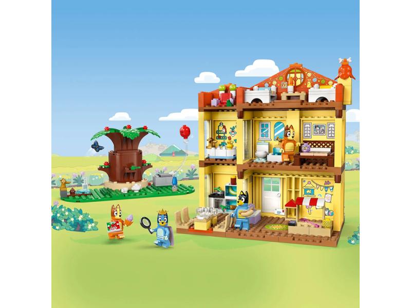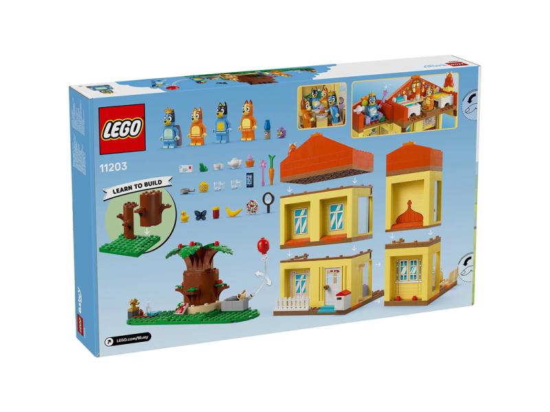 | Karakteristike | Zakoračite u legendarni dom Bluey! Počnite u sobi za igru sa kul tepihom boje kivija i tezgom sa hranom za igru uloga. Na vrhu kuće nalaze se soba Bluey i Bingo, gde Chattermax sedi i čeka. Da li možete da uočite kraljičin presto? Možete istražiti mnogo soba, među kojima je i spavaća soba Mum i Dad, i kuhinja. U dvorištu, pod drvetom, nalaze se grickalice, roštilj i balon za igru žongliranja. Komplet Bluey – porodična kuća (11203) visokog kvaliteta prepun je funkcija, igračaka i junaka iz TV serije Bluey koji će inspirisati decu uzrasta od 4 i više godina da istražuju maštovitu igru uloga sa Bluey i njenom porodicom. Modularna kuća za igru sa više soba sadrži 4 mini-figure – Bluey, Bingo, Chilli (mama Bluey) i Bandit (tata Bluey) – kao i dodatke, među kojima su plašt u duginim bojama, čarobni štapić i lupe. Sve sobe se mogu odvojiti, što omogućava mnogo načina za igru. Unutar igraonice se nalazi kućica za lutke, klavir i tezgu sa hranom za igru pretvaranja. Kuhinja ima frižider, rernu, šporet, sto i stolice. Na spratu je spavaća soba i kupatilo mame i tate. Spavaća soba Bluey i Bingo u potkrovlju ima tepih, lampu i figuru Chattermax. U susednoj sobi je kraljičin presto sa čajnikom, šoljom i žabom. U bašti se nalazi veliko drvo, hotdog, pica, česma, patuljak Džeremi i balon koji treba lansirati u vazduh. LEGO® kompleti za uzrast od 4 i više godina sadrže raznobojno uputstvo i Kocku za početnike kako bi pokrenuli zabavu. • Komplet za igru sa Bluey kućom – deca mogu da rekonstruišu svu zabavu kuće iz TV serije Bluey sa kompletom za gradnju Bluey – porodične kuće, osmišljene posebno za dečake i devojčice uzrasta od 4 i više godina • Igračka kuća-igraonica za decu uzrasta od 4 i više godina – ova LEGO® Bluey igračka sadrži 1 model koji se gradi u kesici, kao i veliku kocku za početnike i jednostavno uputstvo kako bi gradnja malim graditeljima bila brza i laka • Interaktivna igračka za igru pretvaranja – modularna kuća-igraonica i bašta sadrže mini-figure Bluey, Bingo, Mum i Bandit i sobe koje se odvajaju: igraonicu, kuhinju, 2 spavaće sobe, prestonu sobu, toalet i kupatilo • Igračke za igraonicu – sadrži kućicu za lutke, klavir, tezgu sa hranom, frižider, rernu, čajnik, šolju, žabu, picu, hotdog, sto, ogrtač u duginim bojama, čarobni štapić, stolice, lupe, kao i Chattermax i Jeremy gnoma • Poklon za fanove serije Bluey – ovaj zabavni komplet za igru sa igralištem prepun je mogućnosti igre za decu uzrasta od 4 i više godina koja vole predškolsku TV seriju Bluey • Intuitivni vodič za gradnju – štampani vodič sa uputstvom osmišljen je da inspiriše decu i razvije im samopouzdanje u gradnji • Podstaknite zabavu i razvoj dece uz Bluey – LEGO® Bluey kompleti inspirišu kreativnu igru uloga koju će deca razumeti i podržavaju razvojne prekretnice koje će roditelji želeti da podele s decom • Komplet od 382 dela – kuća za igru visoka je 21 cm (8 in.), široka 20 cm (8 in.) i duboka 13 cm (5 in.) |