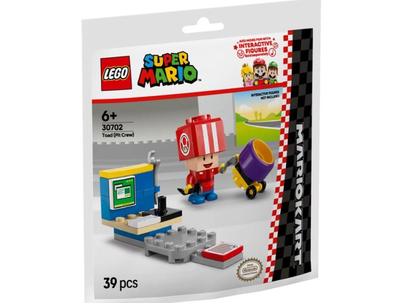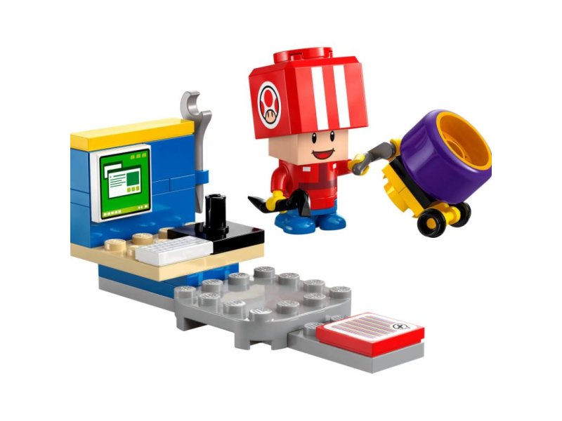 Karakteristike Pridružite se posadi uz ovaj zabavni komplet za igru Mario Kart™, koji sadrži figuru Toad (Pit Crew), radnu stanicu, gumu za karting, kolica i alat.