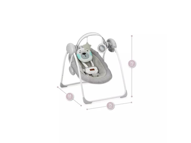 | Karakteristike proizvoda | Sigurnosni pojasevi u 5 tačaka i široki pojas za prepone 5 nivoa brzine ljuljanja Adapter za napajanje ili punjenje Tajmer omogućava podešavanje automatskog isključivanja funkcije ljuljanja za 10, 15 ili 30 minuta 8 tihih melodija i 2 igračke na dohvat ruke Stabilna konstrukcija, gumeni, protivklizni jastučići U skladu sa sigurnosnim standardima Evropske unije Sedište je napravljeno od mekog materijala, koji se može skidati i prati u mašini za pranje veša Jednostavan za nošenje Jednostavna konstrukcija omogućava brzo sklapanje Pogodna za bebe od rođenja do 9kg težine deteta Dimenzije i težina proizvoda: Dimenzije ljuljaške: 58 cm x 68 cm x 64 cm Dimenzije pakovanja: 58,5 cm x 13 cm x 39 cm Težina ljuljaške: 3.5 kg |