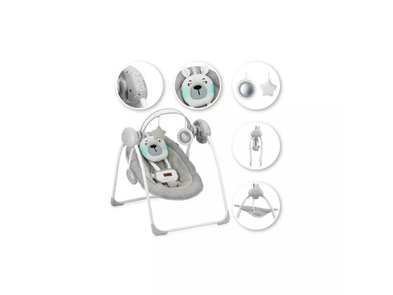| Opis proizvoda | MoMi Liss ljuljška za bebe Bear ima funkciju automatskog ljuljanja sa mogućnošću podešavanja vremena koje želite da ljulja i radi kako na baterije (koje se kupuju posebno), tako i na struju putem adaptera. Poseduje 8 lepih i umirujućih melodija i 2 plišane zanimljive igračke, koje će okupirati bebinu pažnju. Sigurna je i veoma laka za nošenje. Sedište je napravljeno od mekog i prijatnog materijala i može se prati u mašini. Namenjena je bebama od rođenja do 9 kg težine. |