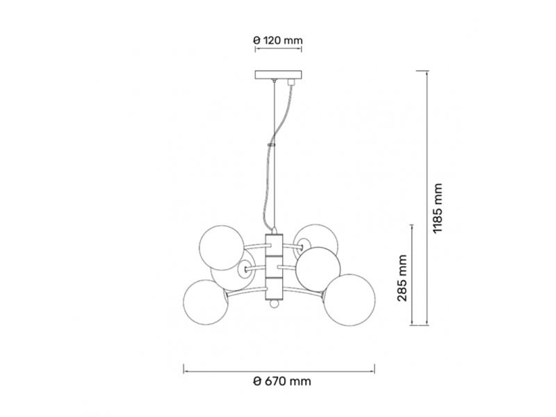 | Karakteristike | Artikal Luster Model / tip TALIA 48 Nazivni napon 220-240V AC / 50/60Hz Tip grla G 9 Broj grla 6 Izvor svetlosti Sijalica (izmenjiva) Boja artikla bakar / crna Materijal Aluminijum Dimenzije 670 x 1185 mm Abažur Kugla – Ø150 mm Način / tip montaže nadgradna Stepen električne zaštite Klasa I IP zaštita IP 20 |