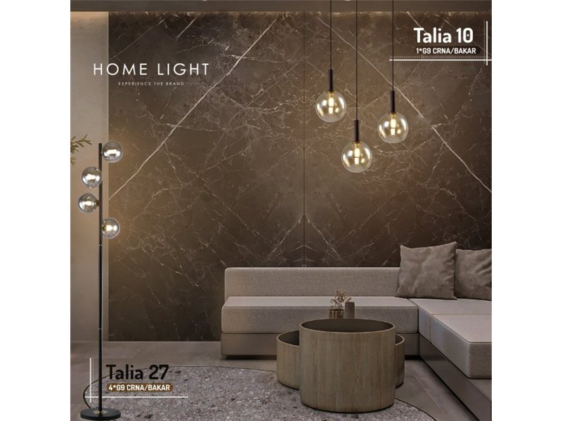 TALIA 10 visilica sa jednom G9 sijalicom u crnoj i bakarnoj boji pruža funkcionalno i elegantno osvetljenje za kuhinje, barove ili restorane. Njen moderni dizajn sa metalnim detaljima u crnoj i bakarnoj boji stvara upečatljiv vizualni efekat u svakom enterijeru.