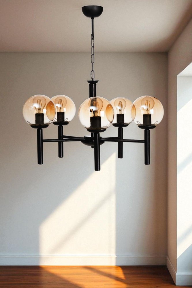| Karakteristike | Luster Materijal lustera: Metal Materijal abažura: Staklo Dimenzije: Ukupna visina: 75 cm Prečnik abažura: 15 cm Visina abažura: 15 cm Prečnik baze: 12 cm Visina baze: 7 cm Broj izvora svetlosti: 5 Tip sijaličnog grla: E27 Specifikacije osvetljenja: E27 5x max 40W Radni napon: 220-240 V IP zaštita: IP20 Ostalo: Podesiva visina Napomena: Sijalice nisu uključene u pakovanje |