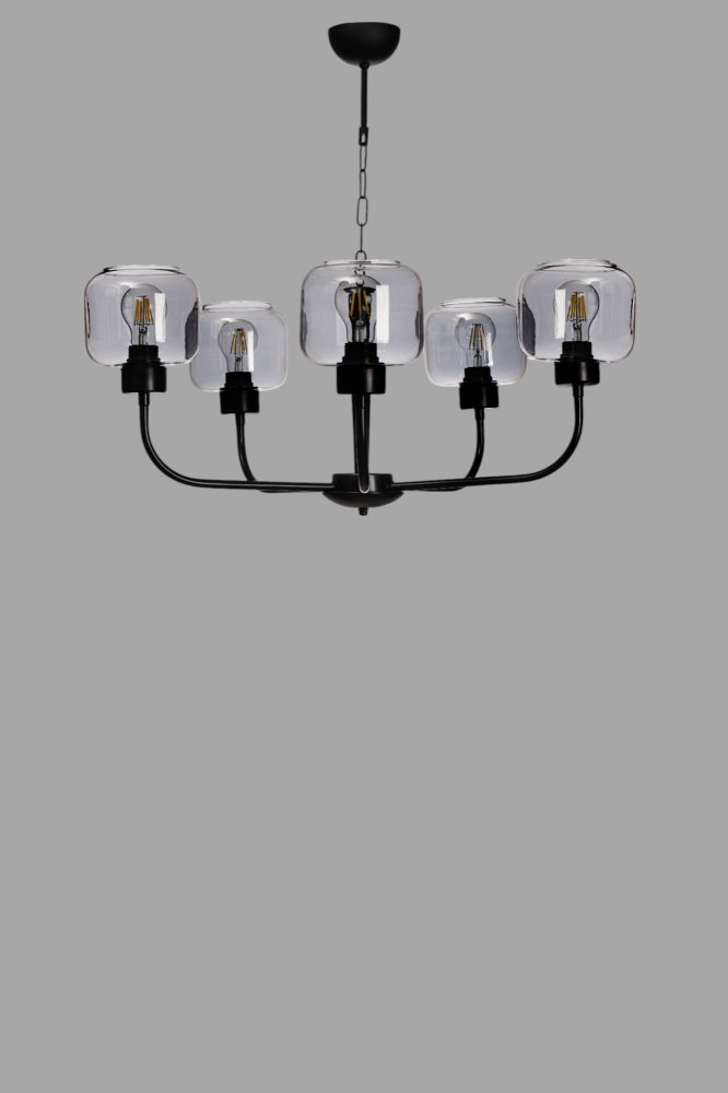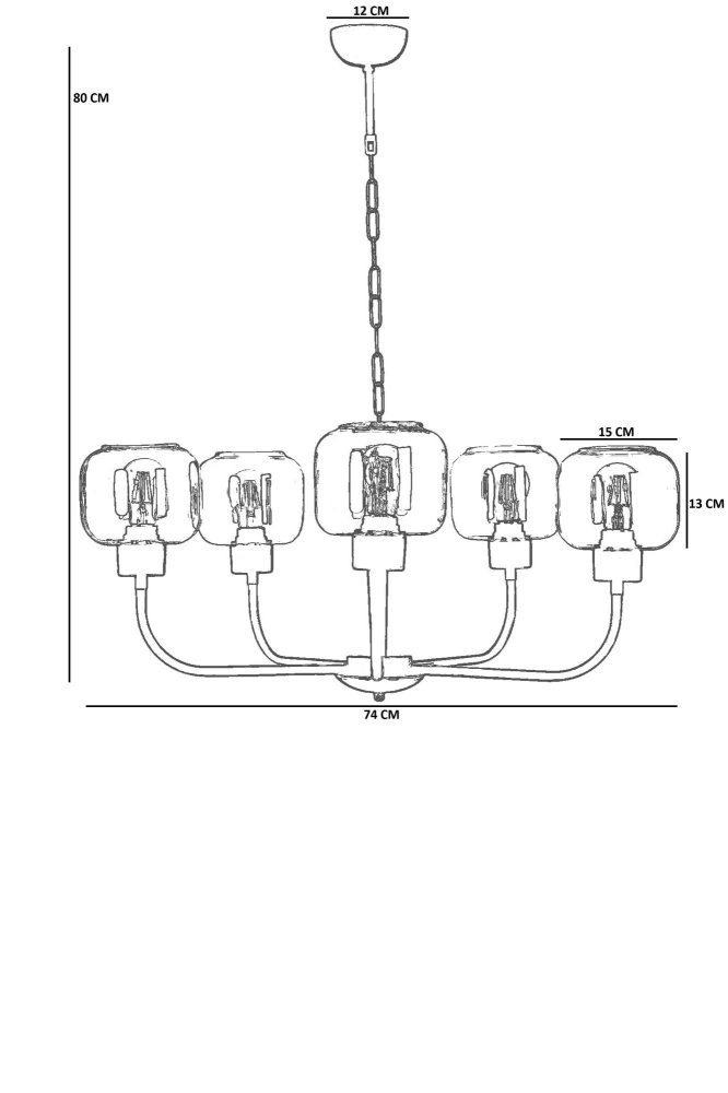 | Karakteristike | Luster Materijal lustera: Metal Materijal abažura: Staklo Dimenzije: Ukupna visina: 78 cm Prečnik abažura: 15 cm Visina abažura: 13 cm Prečnik baze: 12 cm Visina baze: 3 cm Broj izvora svetlosti: 5 Tip sijaličnog grla: E27 Specifikacije osvetljenja: E27 5x max 40W Radni napon: 220-240 V IP zaštita: IP20 Ostalo: Podesiva visina Napomena: Sijalice nisu uključene u pakovanje |