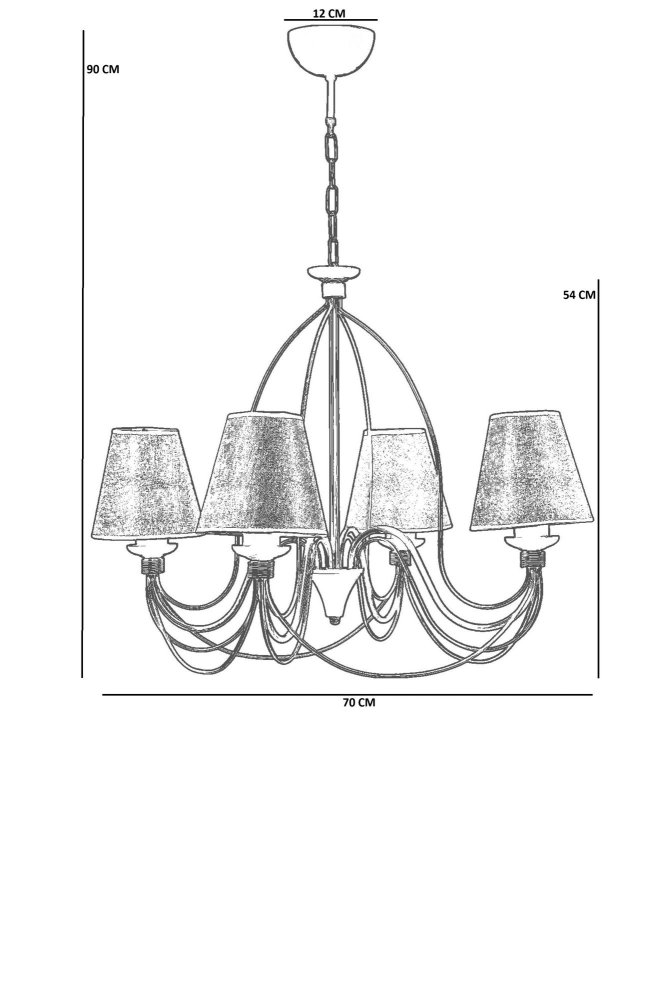| Karakteristike | Luster Materijal lustera: Metal Materijal abažura: Tekstil Dimenzije: Ukupna visina: 90 cm Prečnik abažura: 9-16 cm Visina abažura: 16 cm Prečnik baze: 12 cm Visina baze: 7 cm Broj izvora svetlosti: 4 Tip sijaličnog grla: E14 Specifikacije osvetljenja: E14 4x max 40W Radni napon: 220-240 V IP zaštita: IP20 Ostalo: Podesiva visina Napomena: Sijalice nisu uključene u pakovanje |