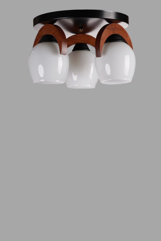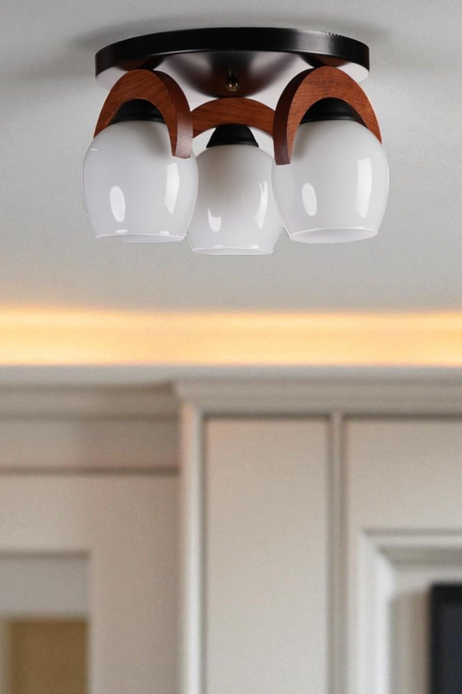 | Karakteristike | Luster Materijal lustera: Metal sa drvenim detaljima Materijal abažura: Staklo Dimenzije: Ukupna visina: 21 cm Prečnik abažura: 12 cm Visina abažura: 15 cm Prečnik baze: 30 cm Visina baze: 3 cm Broj izvora svetlosti: 3 Tip sijaličnog grla: E27 Specifikacije osvetljenja: E27 3x max 40W Radni napon: 220-240 V IP zaštita: IP20 Napomena: Sijalice nisu uključene u pakovanje |