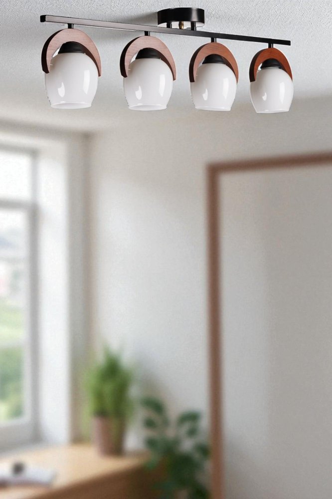 | Karakteristike | Luster Materijal lustera: Metal sa drvenim detaljima Materijal abažura: Staklo Dimenzije: Ukupna visina: 26 cm Prečnik abažura: 12 cm Visina abažura: 15 cm Prečnik baze: 12 cm Visina baze: 3 cm Broj izvora svetlosti: 4 Tip sijaličnog grla: E27 Specifikacije osvetljenja: E27 4x max 40W Radni napon: 220-240 V IP zaštita: IP20 Napomena: Sijalice nisu uključene u pakovanje |