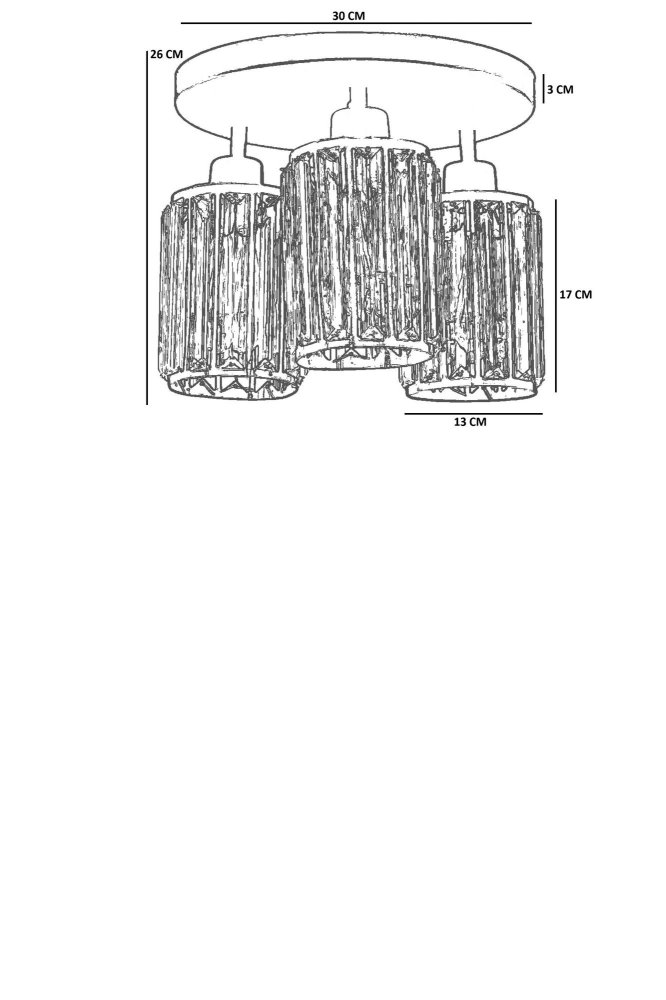 | Karakteristike | Luster Materijal lustera: Metal Materijal abažura: Staklo Dimenzije: Ukupna visina: 26 cm Prečnik abažura: 13 cm Visina abažura: 17 cm Prečnik baze: 30 cm Visina baze: 3 cm Broj izvora svetlosti: 3 Tip sijaličnog grla: E27 Specifikacije osvetljenja: E27 3x max 40W Radni napon: 220-240 V IP zaštita: IP20 Napomena: Sijalice nisu uključene u pakovanje |