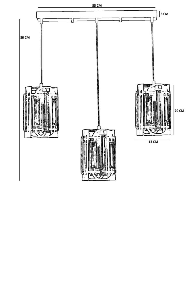 | Karakteristike | Luster Materijal lustera: Metal Materijal abažura: Staklo Dimenzije: Ukupna visina: 80 cm Prečnik abažura: 13 cm Visina abažura: 20 cm Dimenzije baze: 55 x 6 cm Visina baze: 3 cm Broj izvora svetlosti: 3 Tip sijaličnog grla: E27 Specifikacije osvetljenja: E27 3x max 40W Radni napon: 220-240 V IP zaštita: IP20 Ostalo: Podesiva visina Napomena: Sijalice nisu uključene u pakovanje |