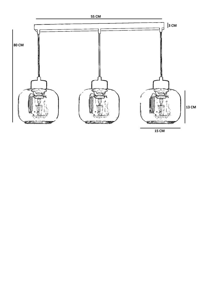 | Karakteristike | Luster Materijal lustera: Metal Materijal abažura: Staklo Dimenzije: Ukupna visina: 80 cm Prečnik abažura: 15 cm Visina abažura: 13 cm Dimenzije baze: 55 x 6 cm Visina baze: 3 cm Broj izvora svetlosti: 3 Tip sijaličnog grla: E27 Specifikacije osvetljenja: E27 3x max 40W Radni napon: 220-240 V IP zaštita: IP20 Ostalo: Podesiva visina Napomena: Sijalice nisu uključene u pakovanje |