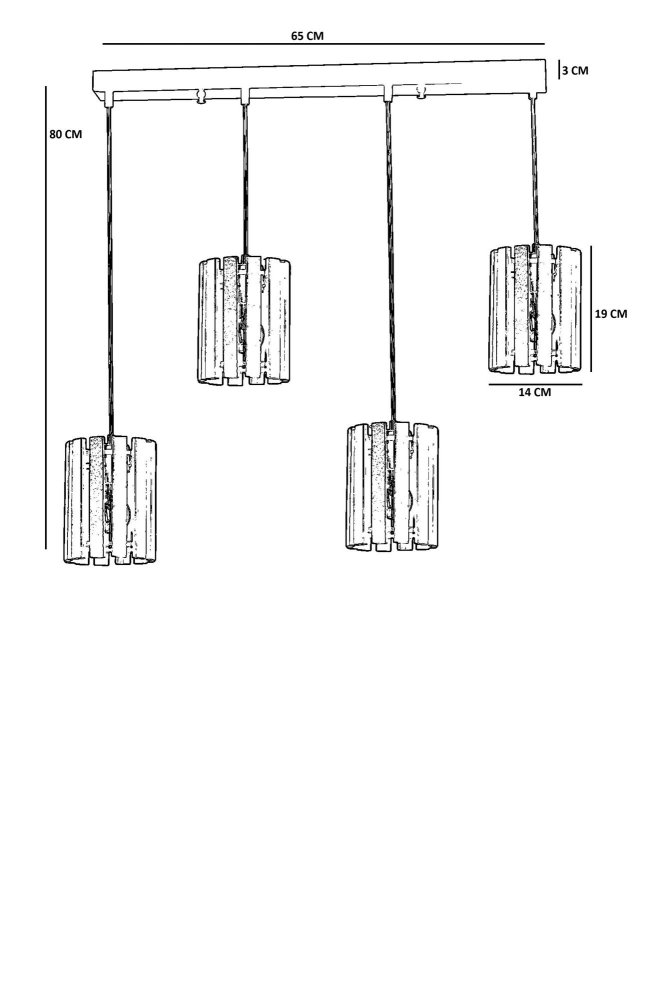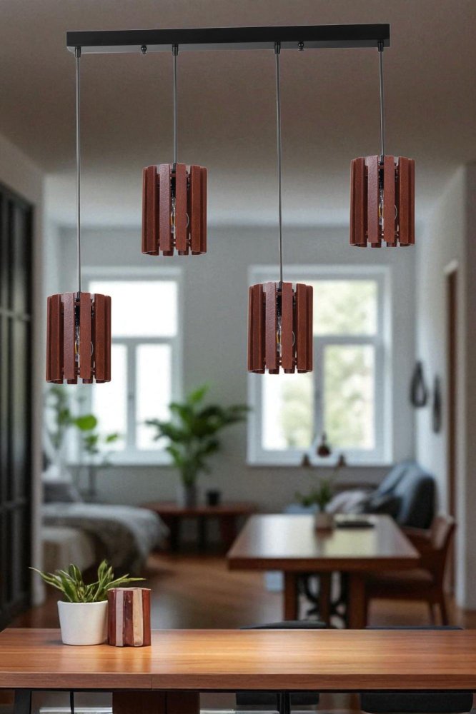 | Karakteristike | Luster Materijal lustera: Metal Materijal abažura: Drvo Dimenzije: Ukupna visina: 80 cm Prečnik abažura: 14 cm Visina abažura: 19 cm Dimenzije baze: 65 x 6 cm Visina baze: 3 cm Broj izvora svetlosti: 4 Tip sijaličnog grla: E27 Specifikacije osvetljenja: E27 4x max 40W Radni napon: 220-240 V IP zaštita: IP20 Ostalo: Podesiva visina Napomena: Sijalice nisu uključene u pakovanje |