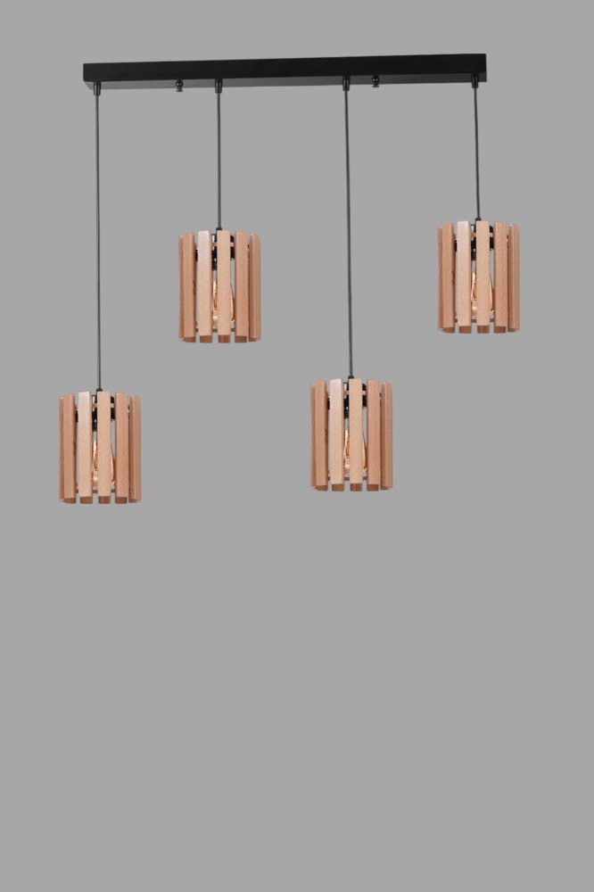 | Karakteristike | Luster Materijal lustera: Metal Materijal abažura: Drvo Dimenzije: Ukupna visina: 80 cm Prečnik abažura: 14 cm Visina abažura: 19 cm Dimenzije baze: 65 x 6 cm Visina baze: 3 cm Broj izvora svetlosti: 4 Tip sijaličnog grla: E27 Specifikacije osvetljenja: E27 4x max 40W Radni napon: 220-240 V IP zaštita: IP20 Ostalo: Podesiva visina Napomena: Sijalice nisu uključene u pakovanje |