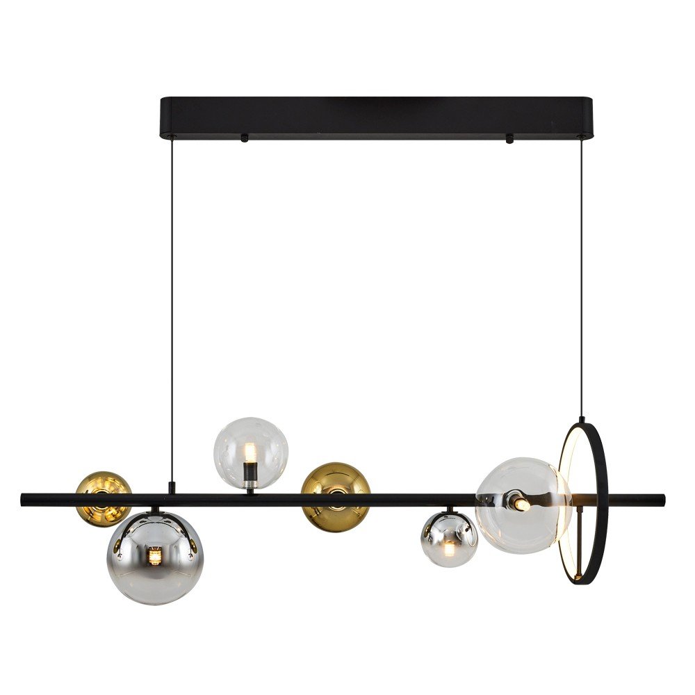 Karakteristike | Luster Materijal lustera: Metal Materijal abažura: Staklo Dimenzije: Širina: 121 cm Dubina: 31 cm Visina: 120 cm Broj izvora svetlosti: 7 Tip sijaličnog grla: G9 Specifikacije osvetljenja: G9 6 x 5W + LED 1 x 19W Temperatura boje: 3000 K Integrisana LED tehnologija Napomena: Sijalice nisu uključene u pakovanje |