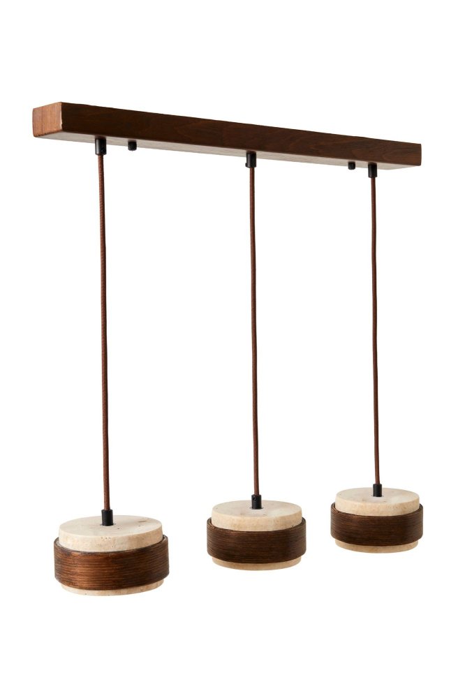| Karakteristike | Luster Materijal kućišta: Drvo Materijal abažura: Travertin Dimenzije: Ukupna visina: 16 - 146 cm Prečnik abažura: 12 cm Visina abažura: 12 cm Dimenzije baze: 60 x 6 cm Visina baze: 4 cm Broj izvora svetlosti: 3 Tip sijaličnog grla: E27 Specifikacije osvetljenja: E27 3x max 40W Radni napon: 220-240 V IP zaštita: IP20 Dodatne funkcionalnosti: Podesiva visina Napomena: Sijalice nisu uključene u pakovanje |