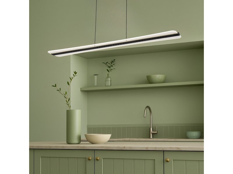 Rabalux Norael preporučuje se onima koji traže veliku lampu visokog intenziteta za prostranu prostoriju u svom domu. Ova moderna viseća svetiljka izrađena je od metala u crnoj boji i dopunjena providnim akrilnim abažurom. Konstrukciju čini jedan dugačak horizontalno postavljen element, na koji su pričvršćena dva nosača u vidu sajli. Lampa se montira na plafon pomoću crne pravougaone dekorativne osnove. Poseduje ugrađeni LED izvor svetla koji emituje toplo belo svetlo, doprinoseći stvaranju prijatne i intimne atmosfere. Izvor svetla ima izvanrednu sposobnost prikaza boja, što stvara prirodan efekat i može pozitivno uticati na naše blagostanje. Viseća svetiljka je idealna za dnevnu sobu, trpezariju ili spavaću sobu.