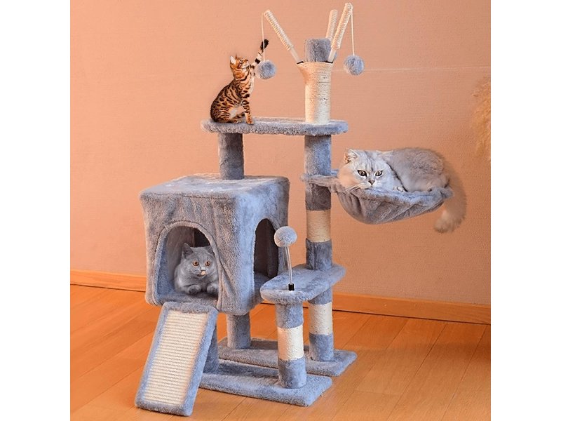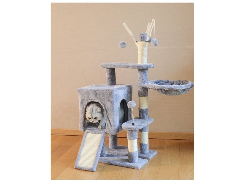 | Specifikacija | Višespratna grebalica za mačke sa kućicom i platformama – kompletan centar za igru Omogućite svojoj mački savršen prostor za igru, odmor i održavanje kandži uz multifunkcionalnu grebalicu sa više nivoa. Ovaj tip “cat tree” konstrukcije kombinuje sve što je vašem ljubimcu potrebno – penjanje, skrivanje, posmatranje i relaksaciju. Ključne prednosti Višenivojski dizajn za maksimalnu aktivnost Grebalice ovog tipa imaju više platformi i nivoa koji omogućavaju mačkama da skaču, penju se i istražuju – što direktno utiče na njihovu fizičku aktivnost i zdravlje. Kućica za odmor i skrivanje Ugrađena zatvorena kućica pruža mački osećaj sigurnosti i privatnosti – idealno za spavanje i opuštanje. Prirodni sisal stubovi Stubovi obloženi sisal konopcem omogućavaju prirodno grebanje i pomažu u očuvanju kandži, dok istovremeno štite vaš nameštaj. Mekana plišana obloga Ceo model je presvučen udobnim plišem koji pruža toplinu i dodatni komfor za ležanje. Stabilna i sigurna konstrukcija Izrađena od čvrste iverice/drveta sa širokom bazom, što sprečava prevrtanje i omogućava sigurnu igru. Zabava + funkcionalnost u jednom Grebalica nije samo igračka – već kompletan prostor gde mačka može: da se igra da se penje da odmara da održava kandže Materijal: Iverica, pliš, prirodni sisal Konstrukcija: Višespratna (platforme + kućica) |