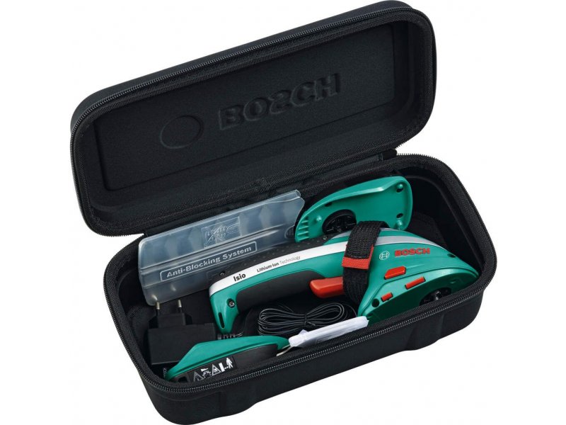 | Karakteristike | Tip akumulatora: Litijum-jonski Napon akumulatora: 3,6 V Kapacitet akumulatora: 1,5 Ah Vreme rada akumulatora: do 50 min Vreme punjenja akumulatora: 3,5 h Dužina noža (za grmlje): 12 cm Širina noža (za travu): 8 cm Rastojanje noževa: 0,8 cm Težina: 500 g Funkcije: Indikator stanja napunjenosti akumulatora LED displej prikazuje status akumulatora sa četiri stepena Sistem „protiv blokade“. Sprečava blokiranje makaza i omogućava opušten rad, bez prekida Jednostavna izmena nastavaka zahvaljujući SDS-sistemu Litijum-jonska tehnologija: kratko vreme punjenja, bez samostalnog pražnjenja, bez efekta memorije i uvek spremni za upotrebu |