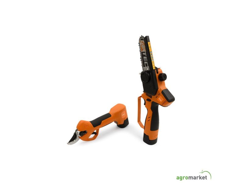 Akumulatorski set za orezivanje kombinuje makaze za precizno skraćivanje grana i kompaktnu lančanu testeru za brzo sečenje drva manjeg prečnika. Namenjen je održavanju voćnjaka, okućnica i rastinja, jednostavan je za rukovanje i ima visok nivo bezbednosti. Zajednička baterijska platforma omogućava praktičan rad bez kablova, dok mala masa alata i ergonomski rukohvati smanjuju zamor pri dužoj upotrebi