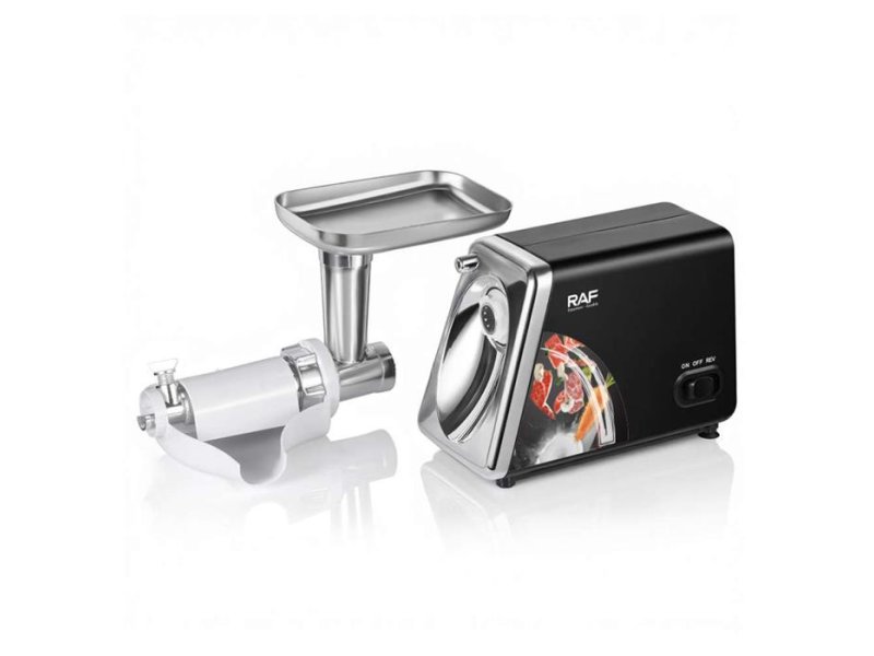 | Karakteristike | Tehničke karakteristike: Snaga: 2500 W Napon: 220-240 V Frekvencija: 50-60 Hz Broj brzina: 2 Funkcija: Reverse (obrnuti smer rada) Zaštita: Zaštita od pregrevanja i preopterećenja Materijali: Nerđajući čelik i plastika Glavne prednosti: ✔ Snažan motor od 2500W za efikasno mlevenje ✔ Dve brzine rada za bolju kontrolu ✔ Reverse funkcija za lakši rad uređaja ✔ Set nastavaka za različite namene ✔ Jednostavno održavanje i čišćenje ✔ Pogodna za svakodnevnu upotrebu u kuhinji Sadržaj pakovanja: • RAF R.3383 mašina za mlevenje mesa • Nož za sečenje • 3 diska za mlevenje • Potiskivač • Nastavak za kobasice • Nastavak za mlevenje paradajza |