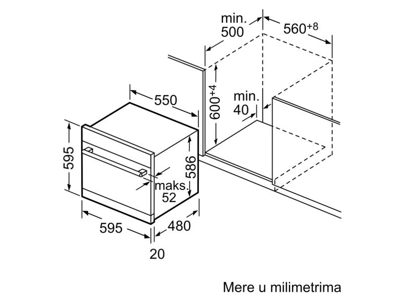 | Dimenzije aparata | Širina: 595 mm Visina: 595 mm Dubina: 480 mm |