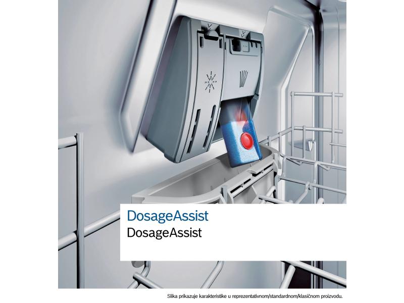 | Ostalo | Karakteristike Tip motora: EcoSilence Drive Potrošnja vode po ciklusu: 9 l Potrošnja električne energije na 100 ciklusa: 74 kWh Trajanje programa: 4:55 h Nivo buke: 46 dB Klasa emisije buke: C Interval odloženog starta: do 24h Način sušenja: Izmjenjivač toplote Sistem korpi: Praktično punjenje sa Vario korpom Funkcije Funkcija Home Connect: Daljinsko praćenje i upravljanje Dodatne funkcije preko aplikacije Home Connect: Higijena Plus, Tišina na zahtev Extra Dry Polovično punjenje VarioSpeed Plus Machine Care Senzor za vodu i količinu posuđa Detektovanje deterdženta Električni panel za zaključavanje AquaStop Programi Eco program Auto 45-65°C Intenzivno 70ºC Quick L Prilagođeni program |