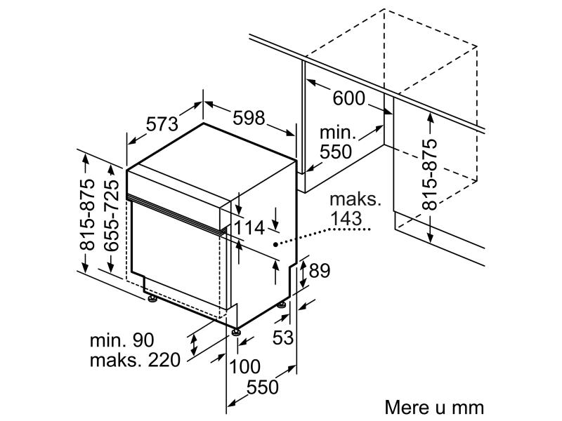 | Dimenzije aparata | Širina: 598 mm Visina: 815 mm Dubina: 573 mm |