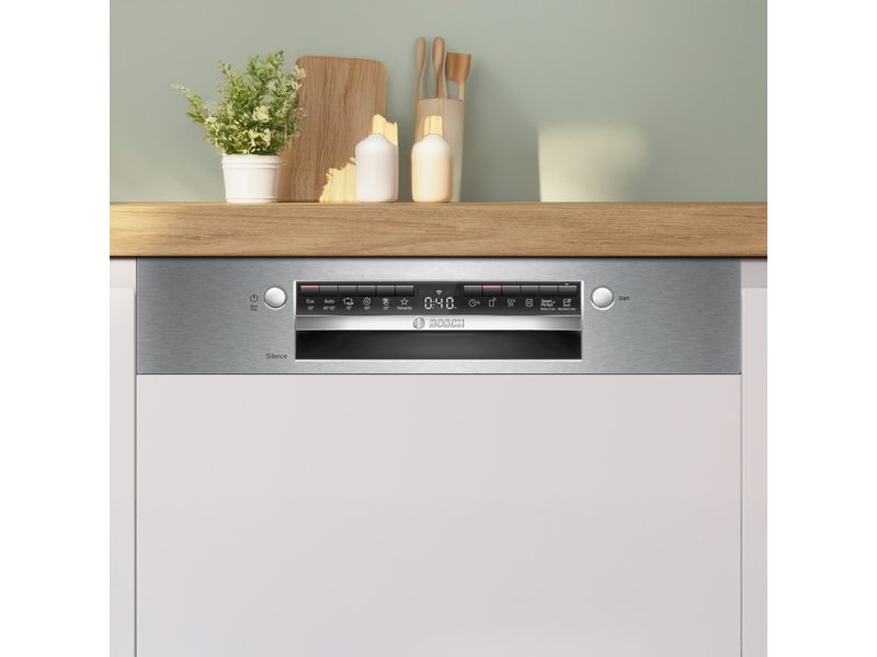 | Ostalo | Karakteristike Tip motora: EcoSilence Drive Potrošnja vode po ciklusu: 9 l Potrošnja električne energije na 100 ciklusa: 75 kWh Trajanje programa: 4h 55min Nivo buke: 46 dB Klasa emisije buke: C Interval odloženog starta: do 24h Način sušenja: Izmjenjivač toplote Sistem korpi: Visoka fleksibilnost sa Vario Flex korpom Funkcije Funkcija Home Connect: Daljinsko praćenje i upravljanje Dodatne funkcije preko aplikacije Home Connect: Higijena Plus, Tišina na zahtev Extra Dry Polovično punjenje varioSpeed Plus Machine Care Senzor za vodu i količinu posuđa Detektovanje deterdženta AquaStop Dečiji sigurnosni sistem Električni panel za zaključavanje Programi Eco program Auto 45-65°C Intenzivno 70ºC Quick L Tih rad Prilagođeni program |